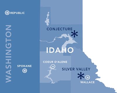 The Conjecture property consists of approximately 240 acres and includes both patented and unpatented lode mining claims, located in the Lakeview Mining District of northern Idaho, roughly 30 miles northwest of the Coeur d'Alene Mining District.